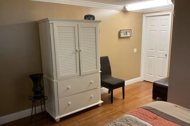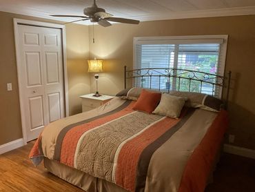3 bedrooms: king bed, queen bed, and sofa bed